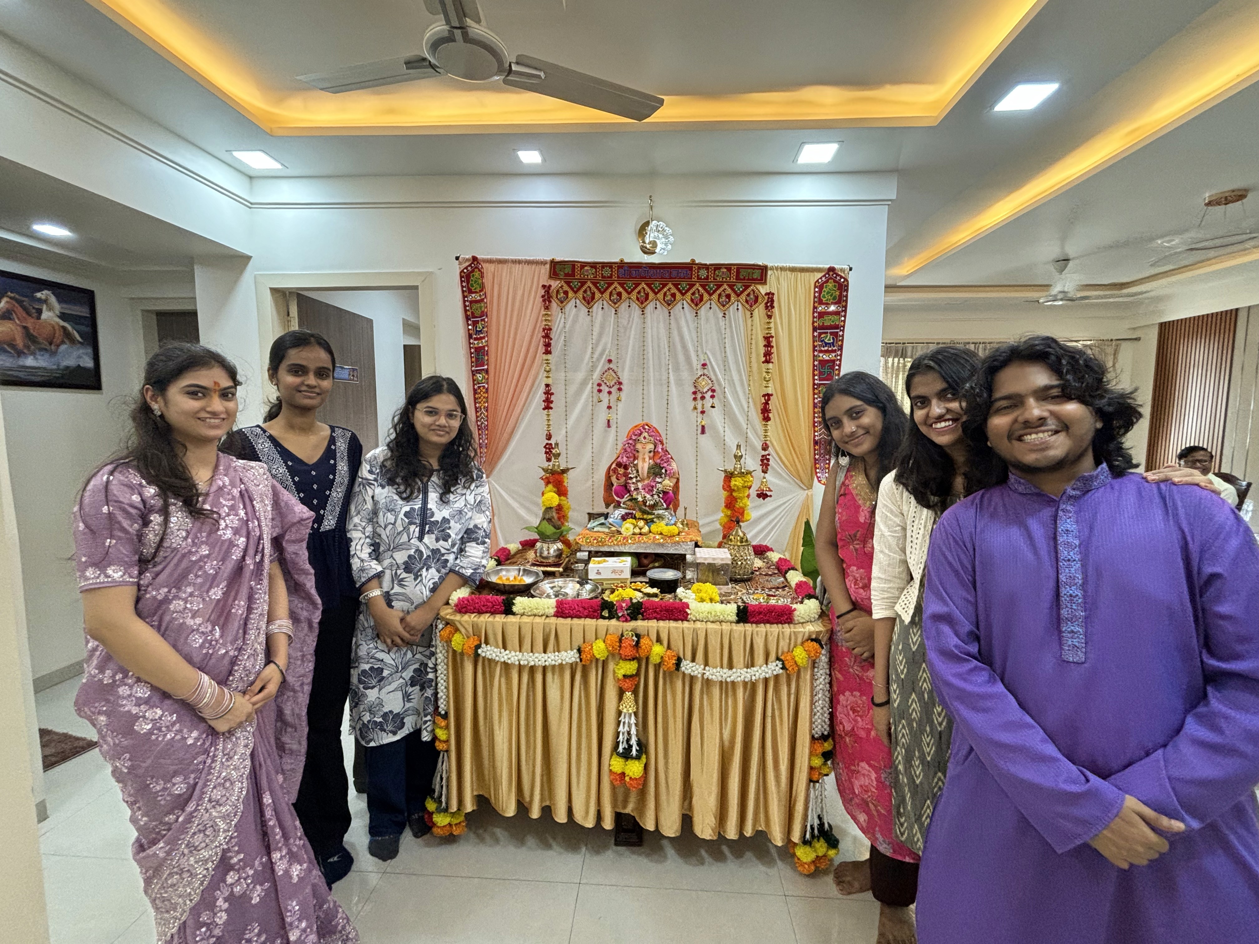 The project involved visiting Ganpati idols at different members’ homes, with each day offering a unique cultural experience — from traditional meals on banana leaves and soulful darshans to lively games and a serene Satyanarayan Puja.